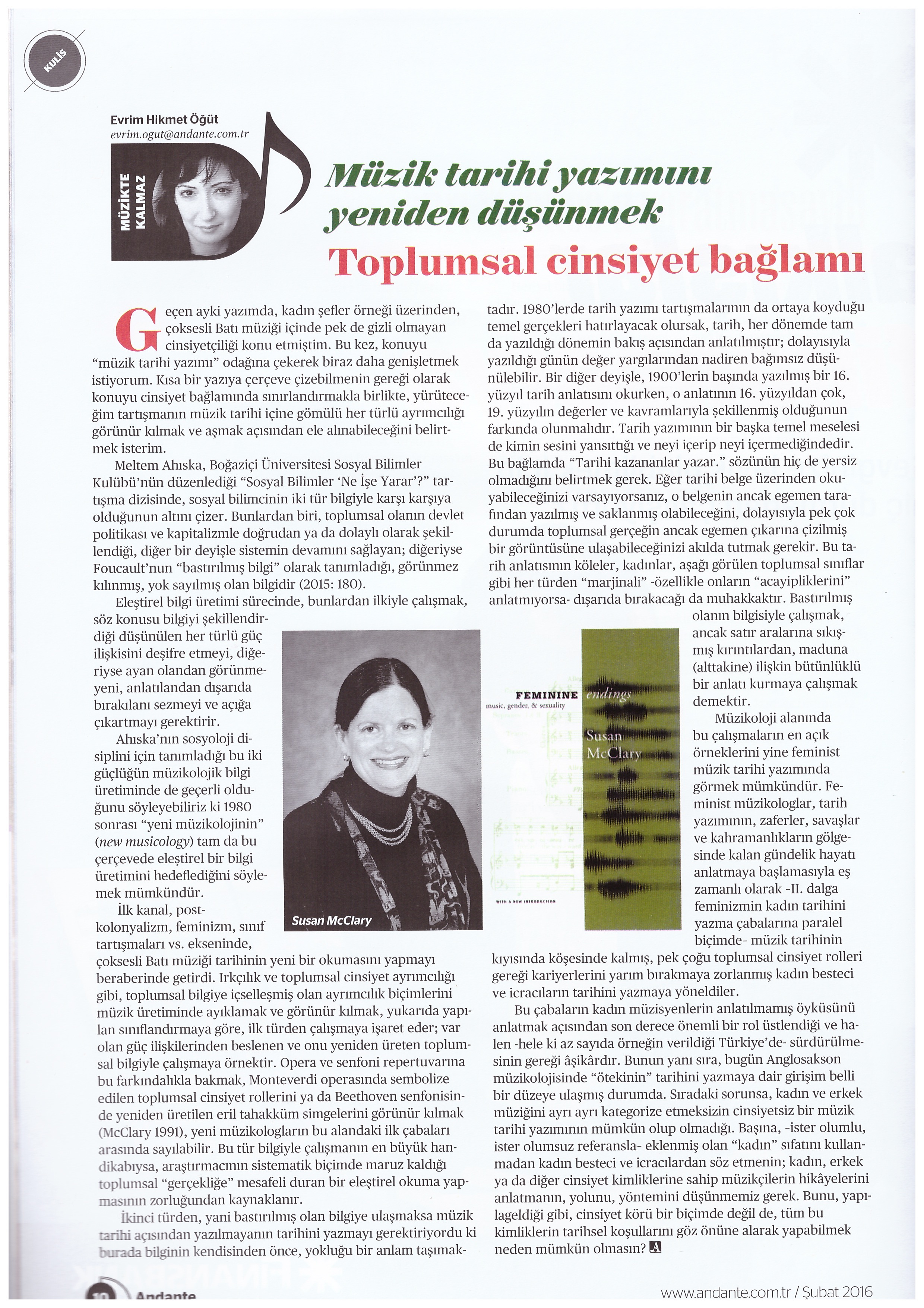 İkinci dalga feminizmin önemli bir katkısı, tam da tarih yazımının tartışıldığı, görünmeyenin, anlatılmayanın, sıradan, gündelik olanın tarihinin yazılmaya başlandığı bir dönemde kadınların tarihine odaklanması oldu. Elbette bu çaba kısa sürede müzikoloji/müzik tarihçiliği alanına da sirayet etti ve 1980’lerde feminist müzikoloji bir çalışma alanı olarak belirginleşirken, kadın müzisyenlerin hikayeleri yazılır, yapıtları incelenir hale geldi. Feminist müzik tarihçiliği bize, müzik tarihinde adını duyduğumuz bazı kadınların, Fanny Mendelssohn örneğindeki gibi sadece kız kardeş veya Clara Schumann ve Alma Mahler gibi eş değil, aynı zamanda eşlerinin, erkek kardeşlerinin ve babalarının gölgesinde kalmış, hatta onlar tarafından engellenmiş besteciler olduklarını gösterdi. Bu noktada küçücük bir parantez açalım ve kabaca bir genellemeyle, babaların kızlarını modern, meslek sahibi kadınlar olmak için erkek kardeş ve eşlere oranla daha fazla desteklediğini hatta Clara örneğindeki gibi onları kendi elleriyle eğittiklerini hatırlayalım; aynı babaların kendi eşleri söz konusu olduğunda nasıl davrandıklarını söylemeye bilmem gerek var mı? (zaten Clara’da babası tarafından besteciliğe değil, yorumculuğa yönlendirilmişti).